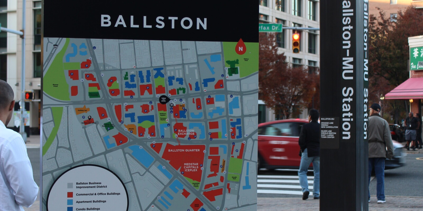 What is placemaking and why is it important to our neighborhood? Placemaking is an effort to increase the connection between people and the place through programs and initiatives to improve the look, feel and safety in the public realm. In Ballston, the BID incorporates placemaking into our strategic plans and annual workplans in the form of beautificaiton projects, wayfinding solutions, public art projects, a public outdoor WiFi system and initiatives that aim to incorporate Ballston’s brand throughout our district. As you walk around the neighborhood you will see our unique banner system along Fairfax Drive that complement the medians along our grand boulevard, gateway signs at our main intersections welcoming you to our neighborhood, and branded wayfinding signs to help you find your way around!